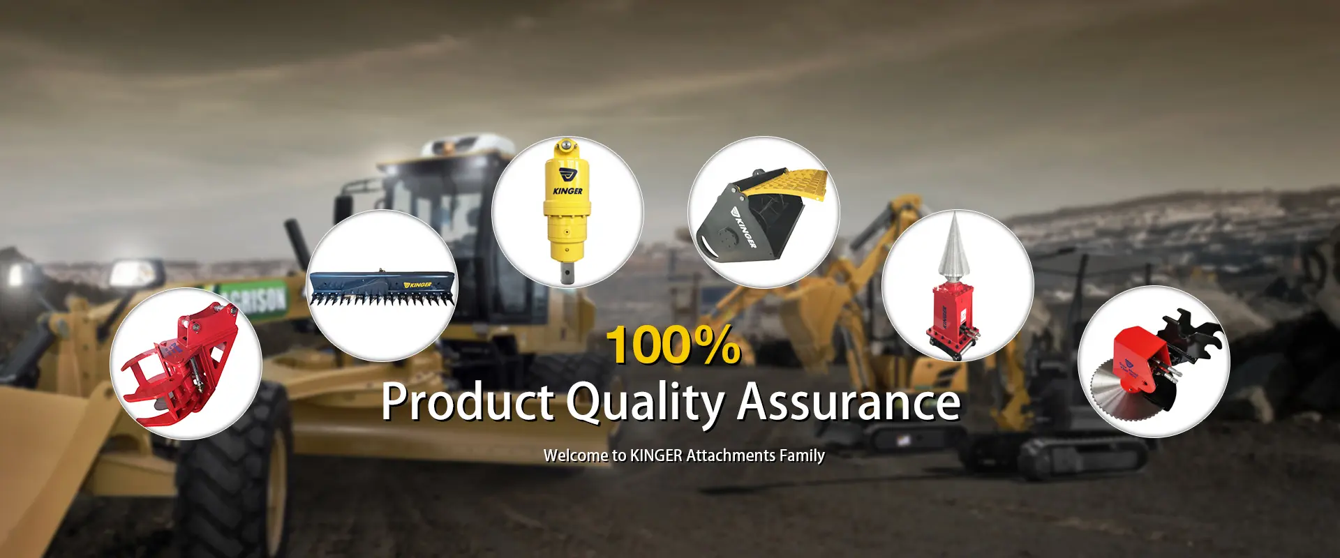 Yantai Dongheng Machinery Co., Ltd. is committed to R&D, manufacture and sell excavator attachment for construction,agricultural and forestry machinery. KINGER main business has Mini excavator, Earth auger, Log splitter, Log grapple, Saw head, Mixer bucket, Mixer bowl, Hedge trimmer, Chain trencher, Tree shear, Stump planer, Hydraulic hammer, Quick coupler, Sweeping brush and other construction machinery and attachment.