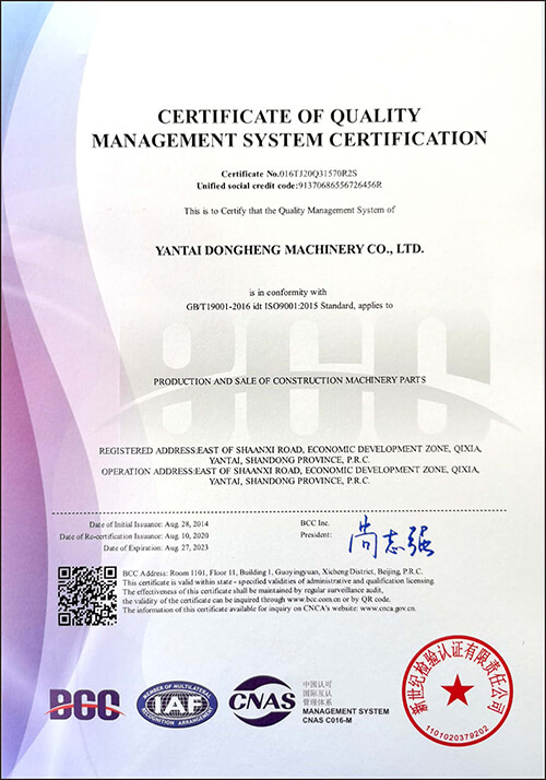 Our company has passed ISO9001:2015 and CE authentication. We are national high-tech enterprise with profession, uniqueness and innovation. Our company owns independent intellectual property rights. So far, we have obtained about more than 30 patents. That makes Dongheng to be a leading position in the Chinese construction machinery industry.
