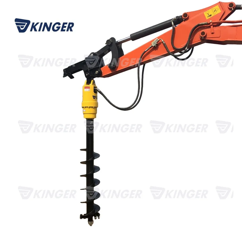 KINGER earth auger widely apply to electric power, forestry, telecommunication municipal works, high-speed railway, Landscaping, Tree planting, Well boring, Foundation piles, Screw pile installations, Ground source heat pumps, Pole and Mast Installations, Solar energy piling, Bridge pier drilling etc.