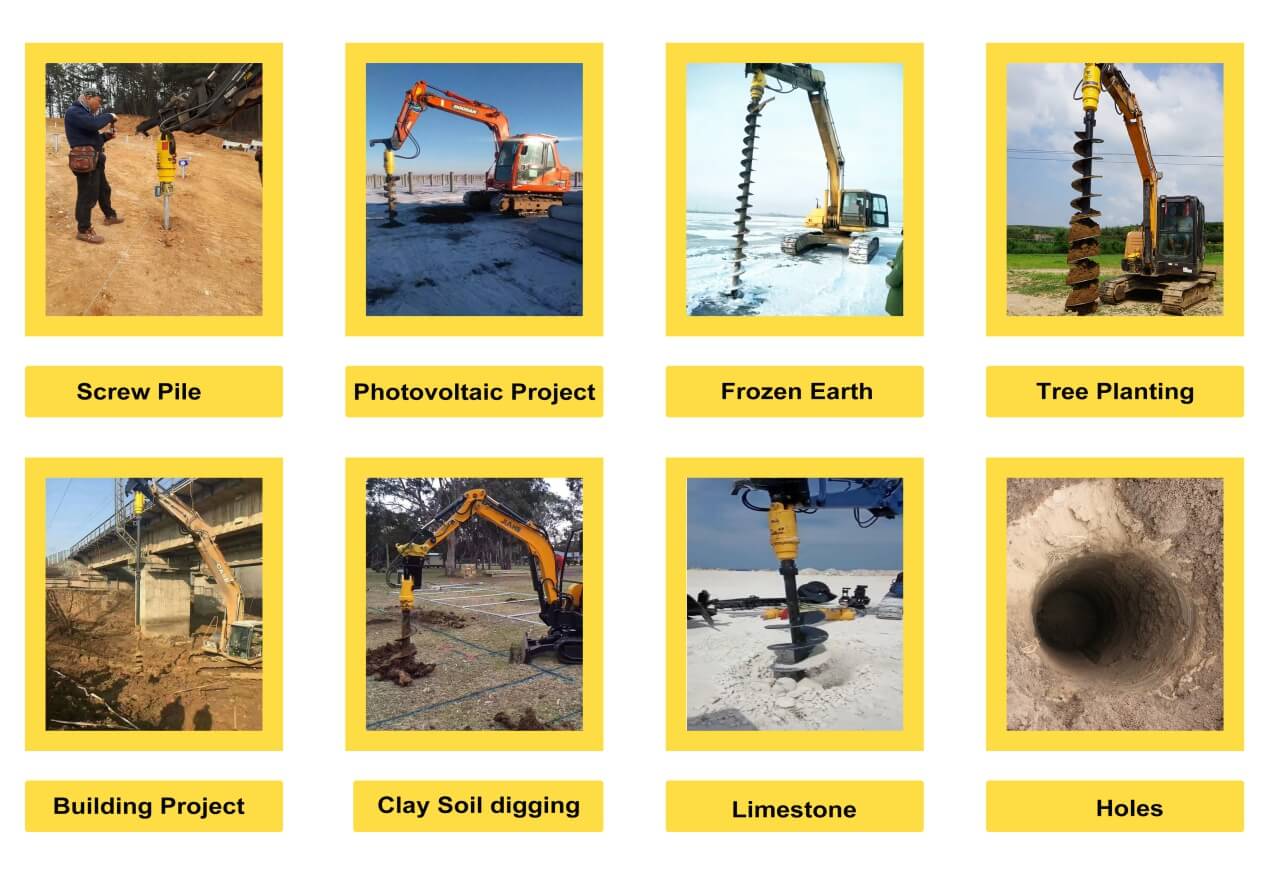 Hydraulic earth auger is mainly composed of power head, cradle hitch, wear-resisting auger drill, hydraulic hose, etc.It is the ideal operating equipment for small pile foundation.In addition, hydraulic earth auger is suitable for drilling in different soil conditions and various project such as electric power, telecommunication, agriculture, municipal administration, highway, high-speed railway, construction, petroleum, forest and so on, as well as other industries such as spiral pile.